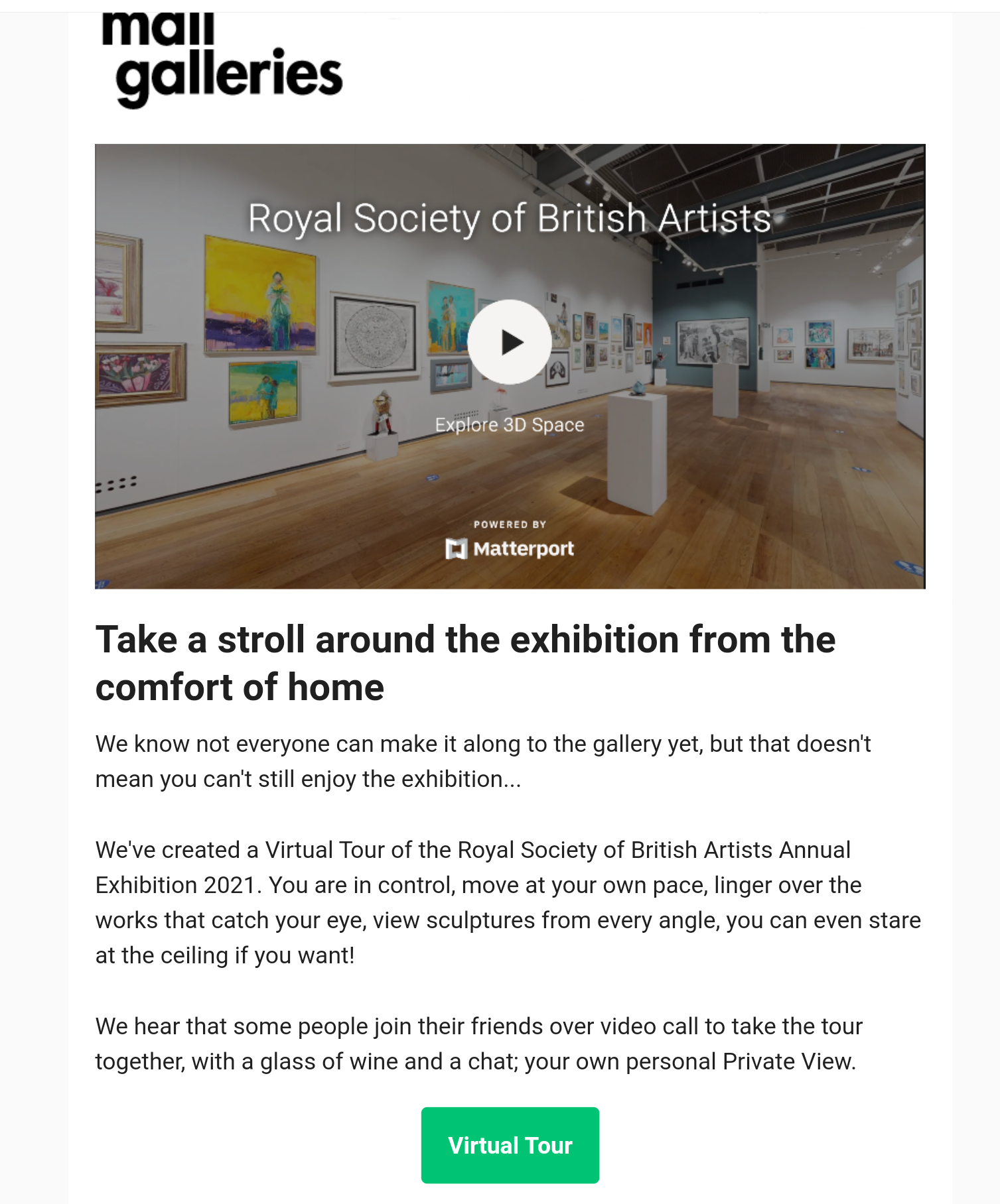 ‘We hear that some people join their friends over video call to take the tour together, with a glass of wine and a chat; your own personal Private View.’ Royal Society of British Artists