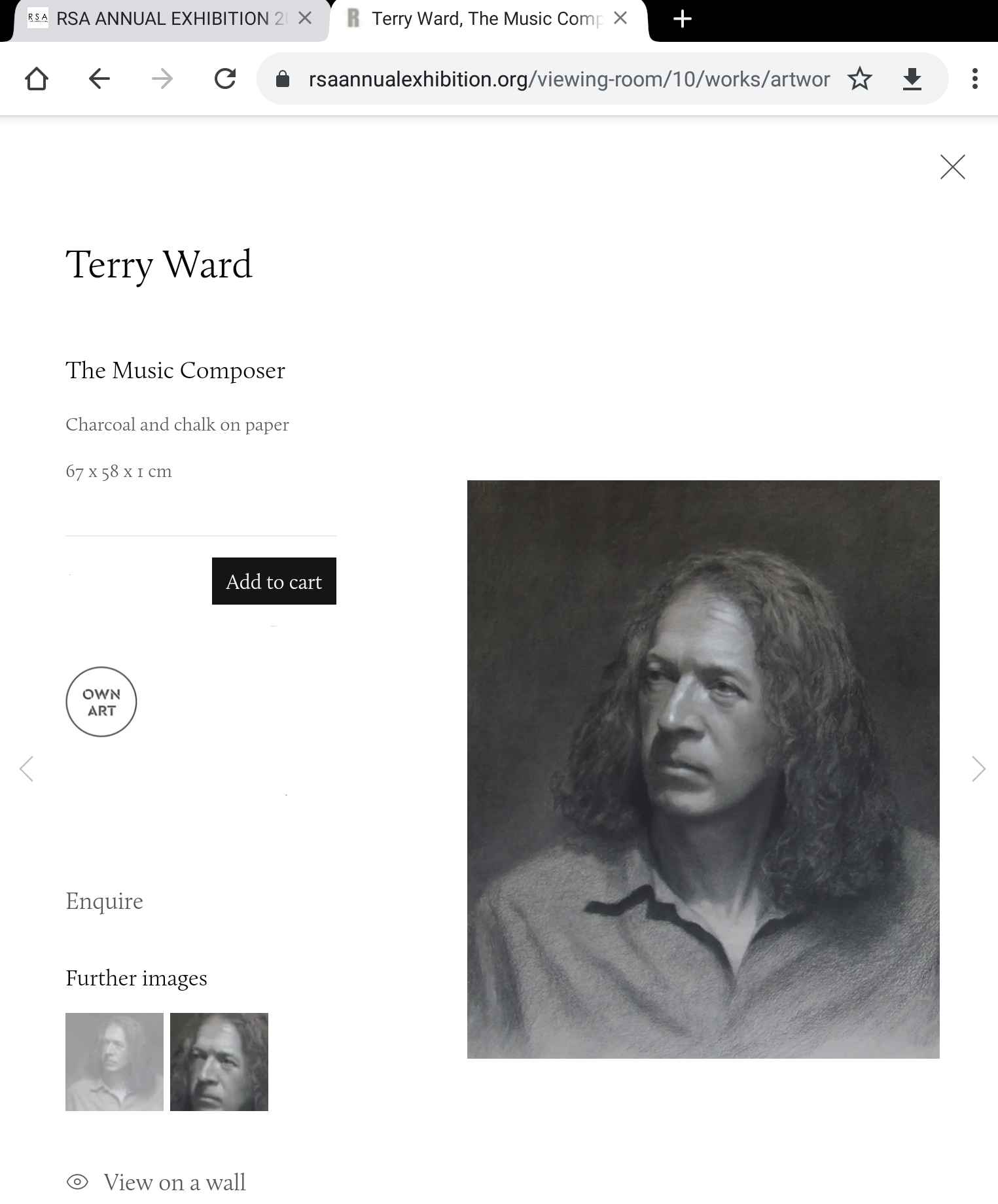My charcoal and chalk drawing ‘The Music Composer’ has been accepted to the RSA’s 195th Annual Art Exhibition which is held entirely online from 2nd April to 30th May, 2021 due to the pandemic.